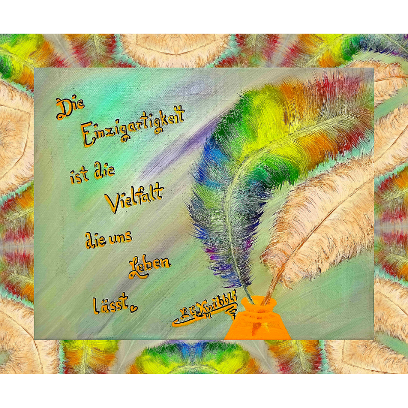 Limitiert 2 St. in 120 x 90 cm - vom Acrylgemälde - Feder - Die Einzigartigkeit ist die Vielfalt die uns Leben lässt - Knibbli