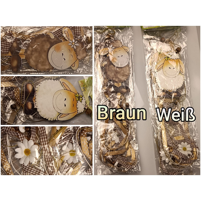 Farben siehe Foto Holz Schaf Holzperlen Stoffblume mit diversen Bändern