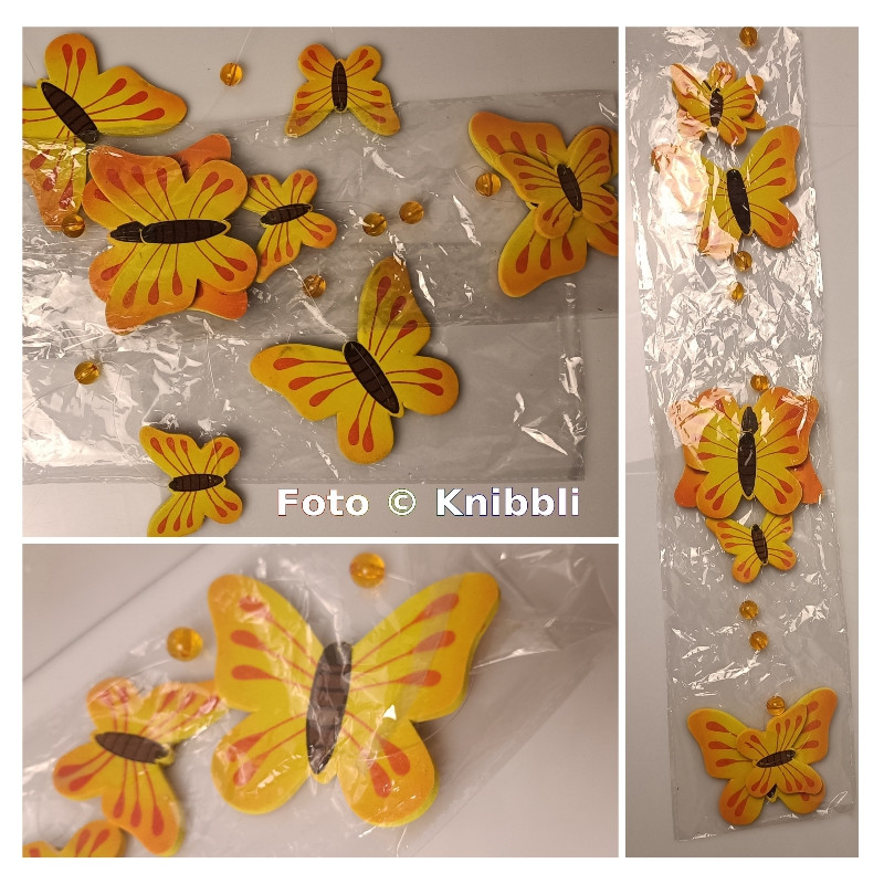 Farben siehe Foto mit Transparentsehne Kunsstoff Perlen und Motive Schmetterlinge aus Moosgummi