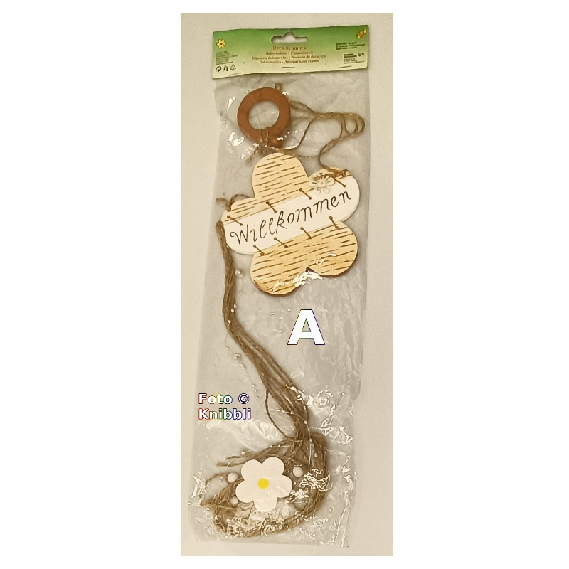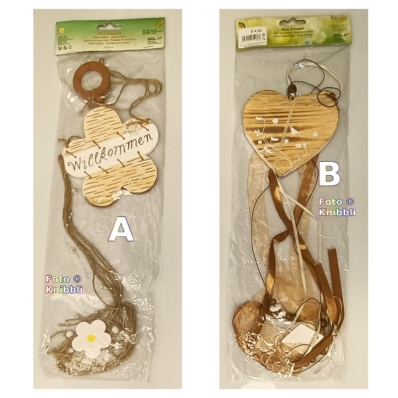 Mit verschiedenen Motiv-Elementen in Holz und Synthetik und Naturband in Naturtönen Weiß, Beige bis Braun