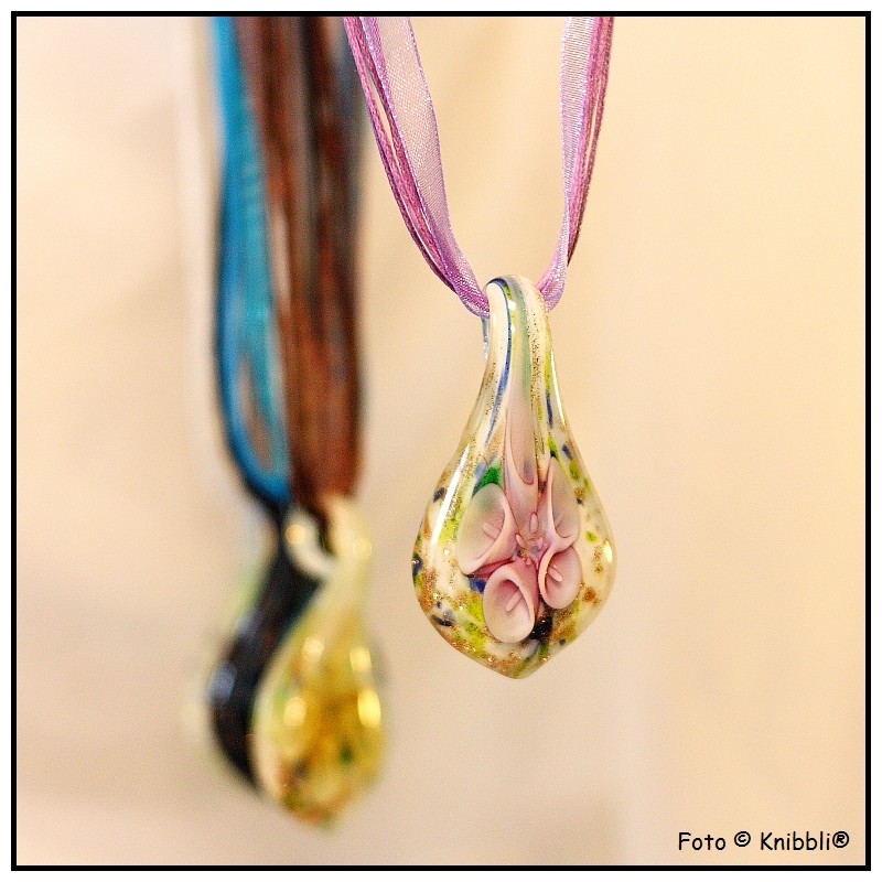 Kette - mit in Natura wundervollen 3D scheinenden farbigen Glasanhänger